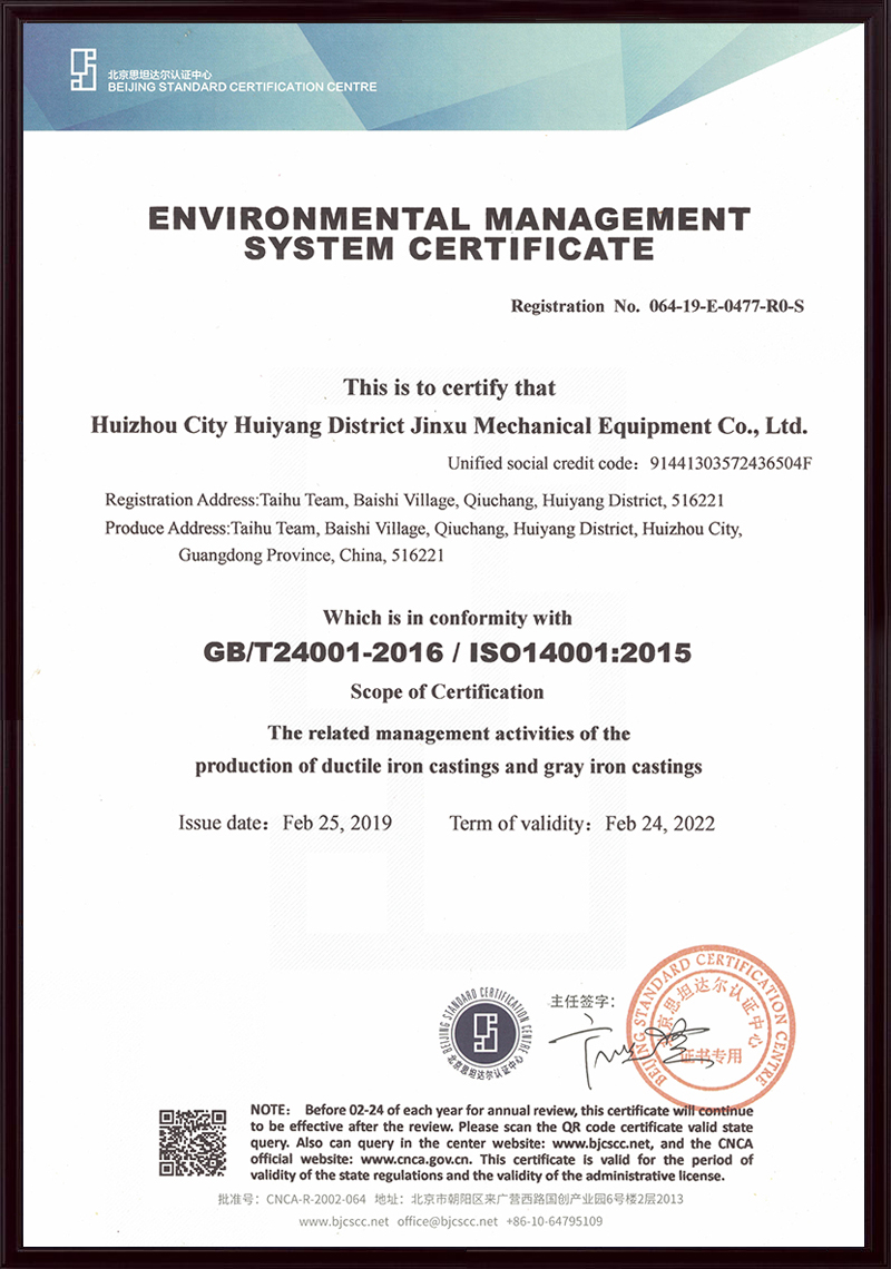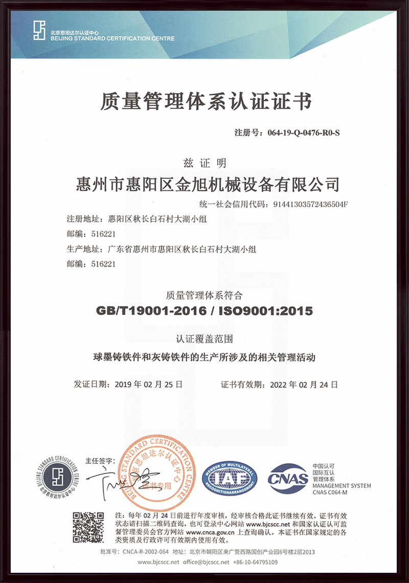惠州市惠陽區(qū)金旭機械設備有限公司(原名深圳金泉鑄造廠),始建于1992年2月,公司坐落于惠州市惠陽區(qū)秋長白石大湖工業(yè)區(qū),是一家集模型、鑄造、機械加工于一體的綜合型企業(yè),主要生產高強度高韌性球墨鑄鐵、灰鑄鐵及鑄銅、鑄鋁等各種材質及牌號鑄件。
